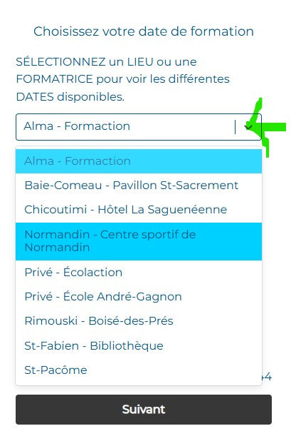 Vous devez naviguer avec la petite flèche qui se trouve à côté du nom de la première ville ou de la première monitrice (pour les cours en ligne).