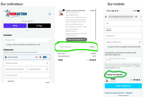 Vous devez ajouter le code promo que vous avez reçu à la page du paiement. Vous devez le mettre dans la case "Code de réduction" ou "Ajouter une réduction" et faire "Valider".